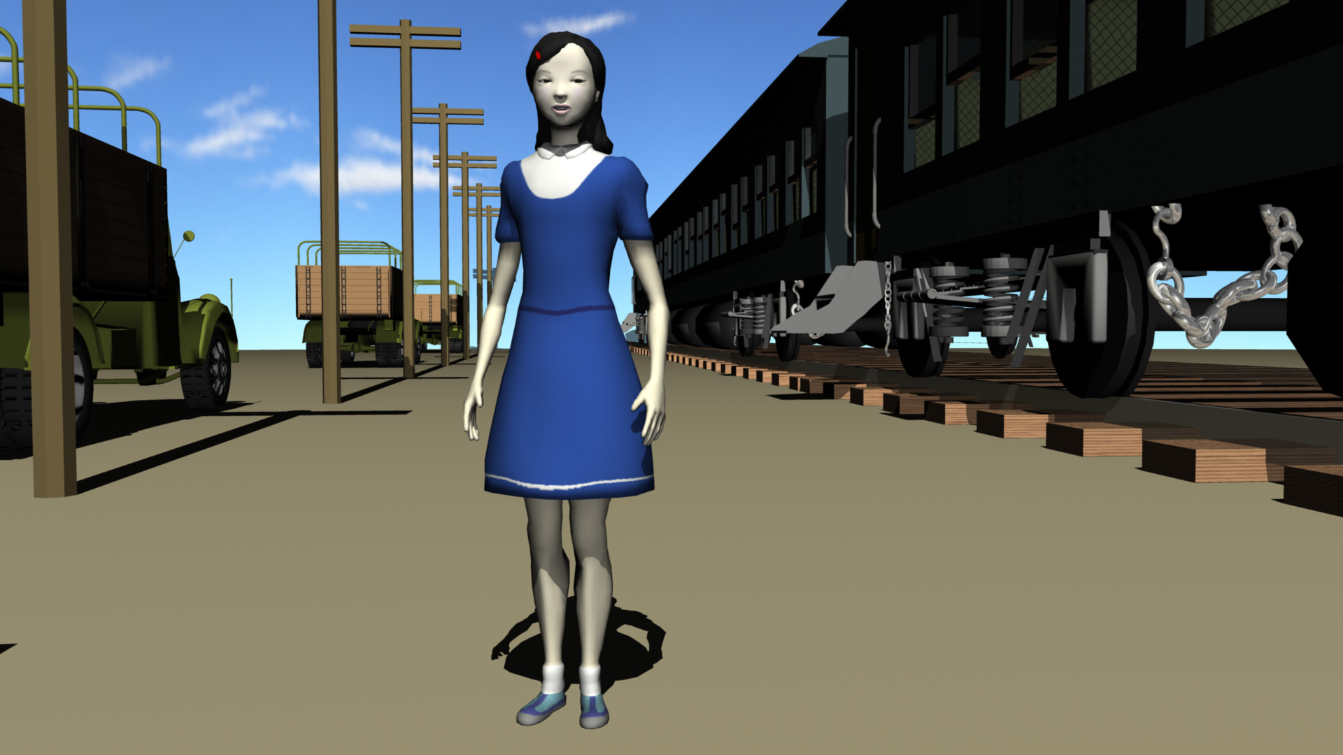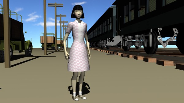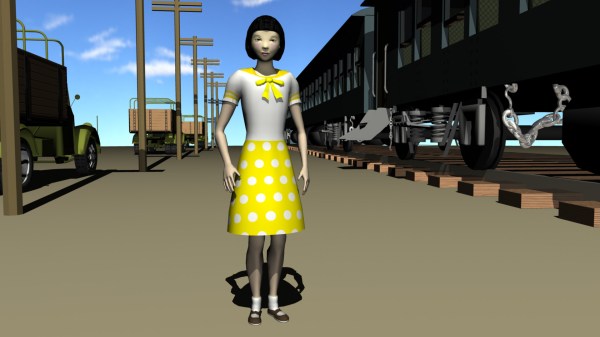 Above: Early version of Michiko as a game character (3D modeling: Ben Loggins)